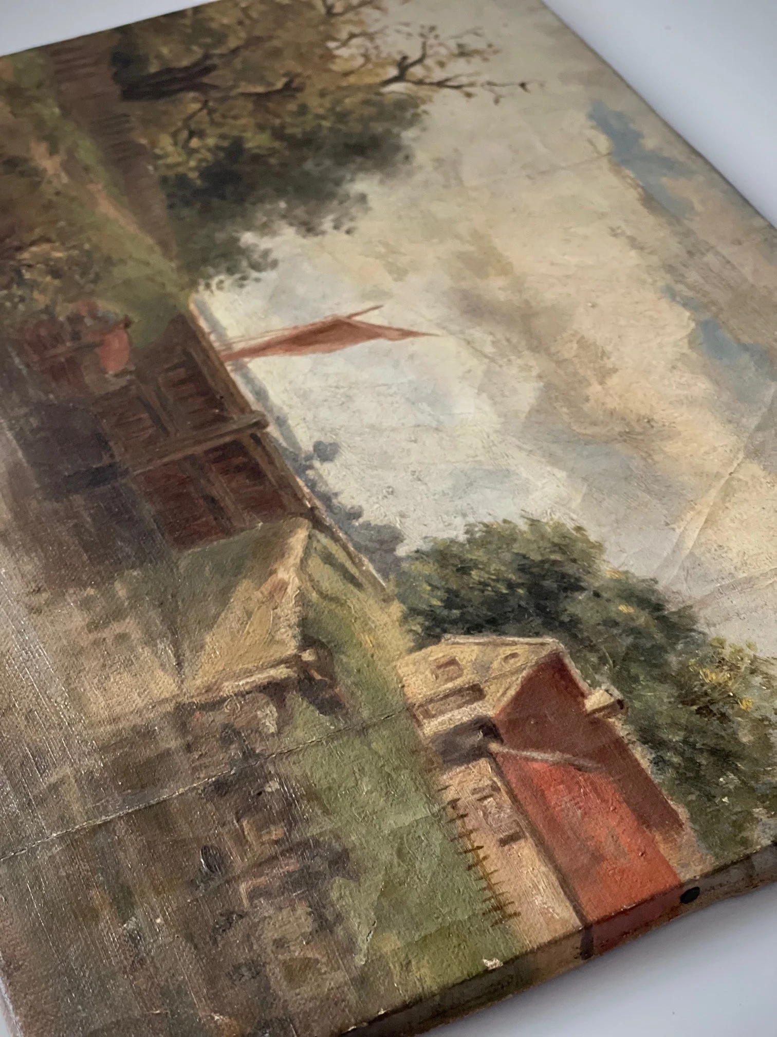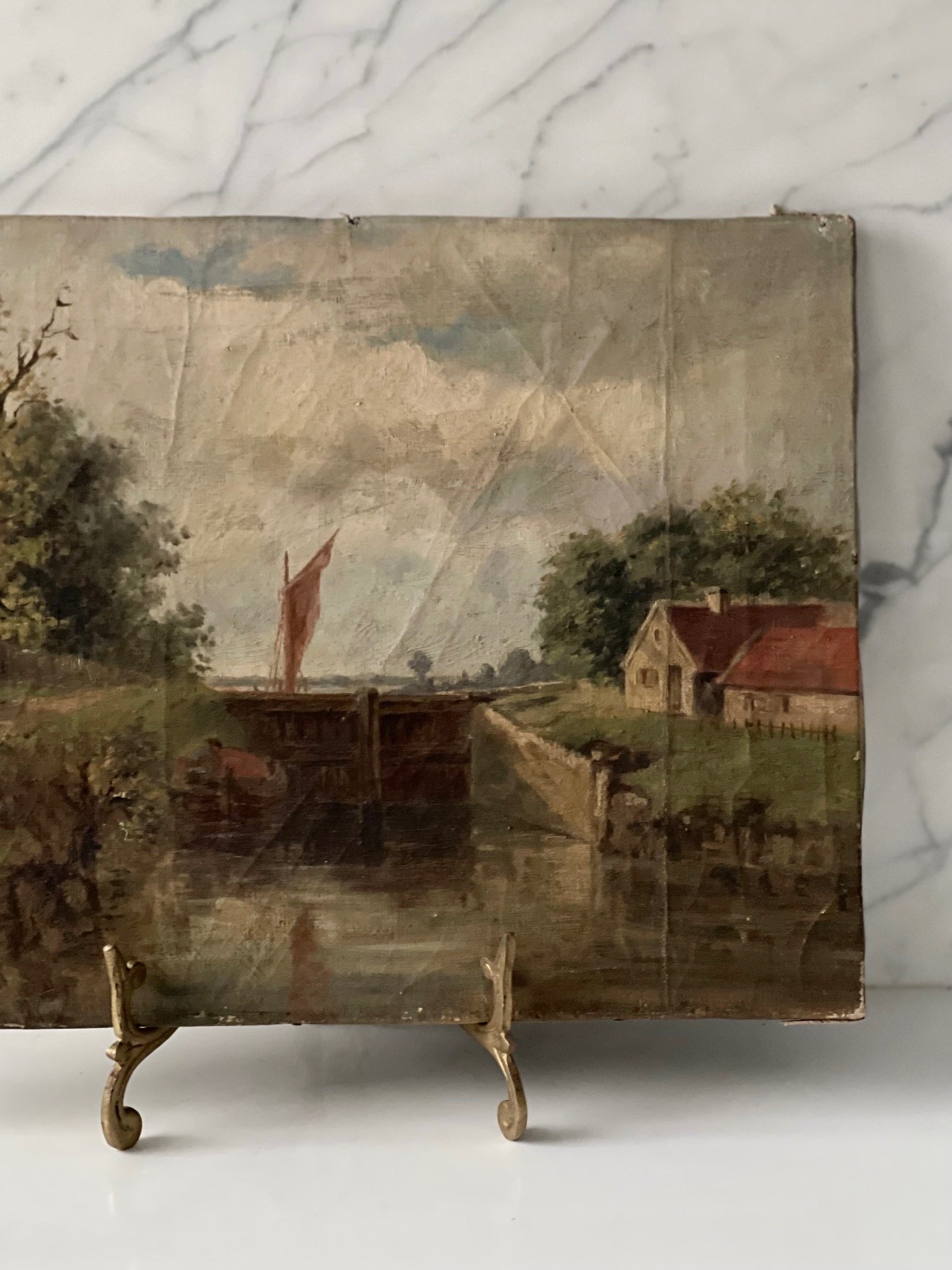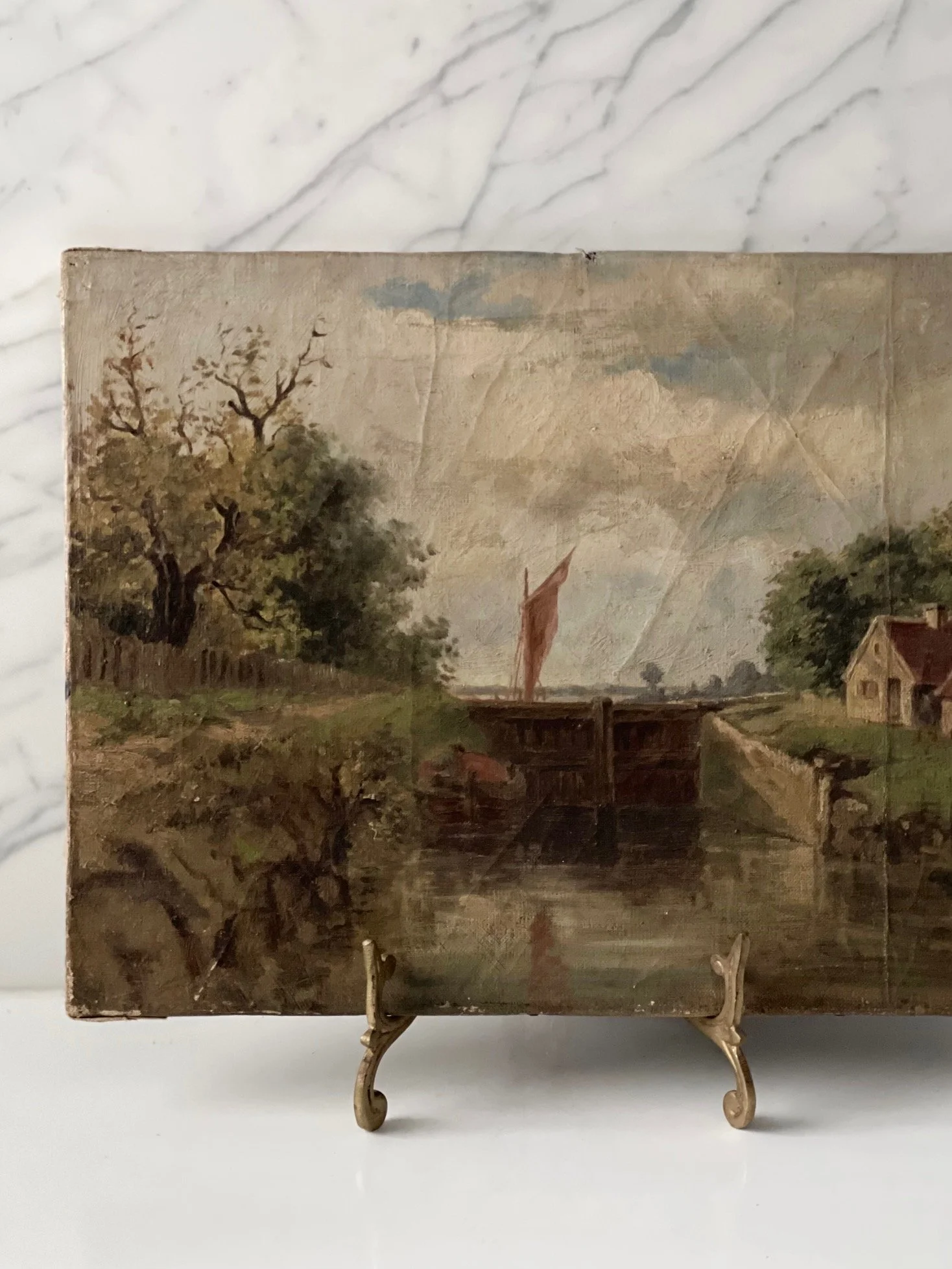 ANTIQUE DUTCH RIVERSCAPE OIL ON CANVAS PAINTING | INCLUDES DELIVERY IN CANADA