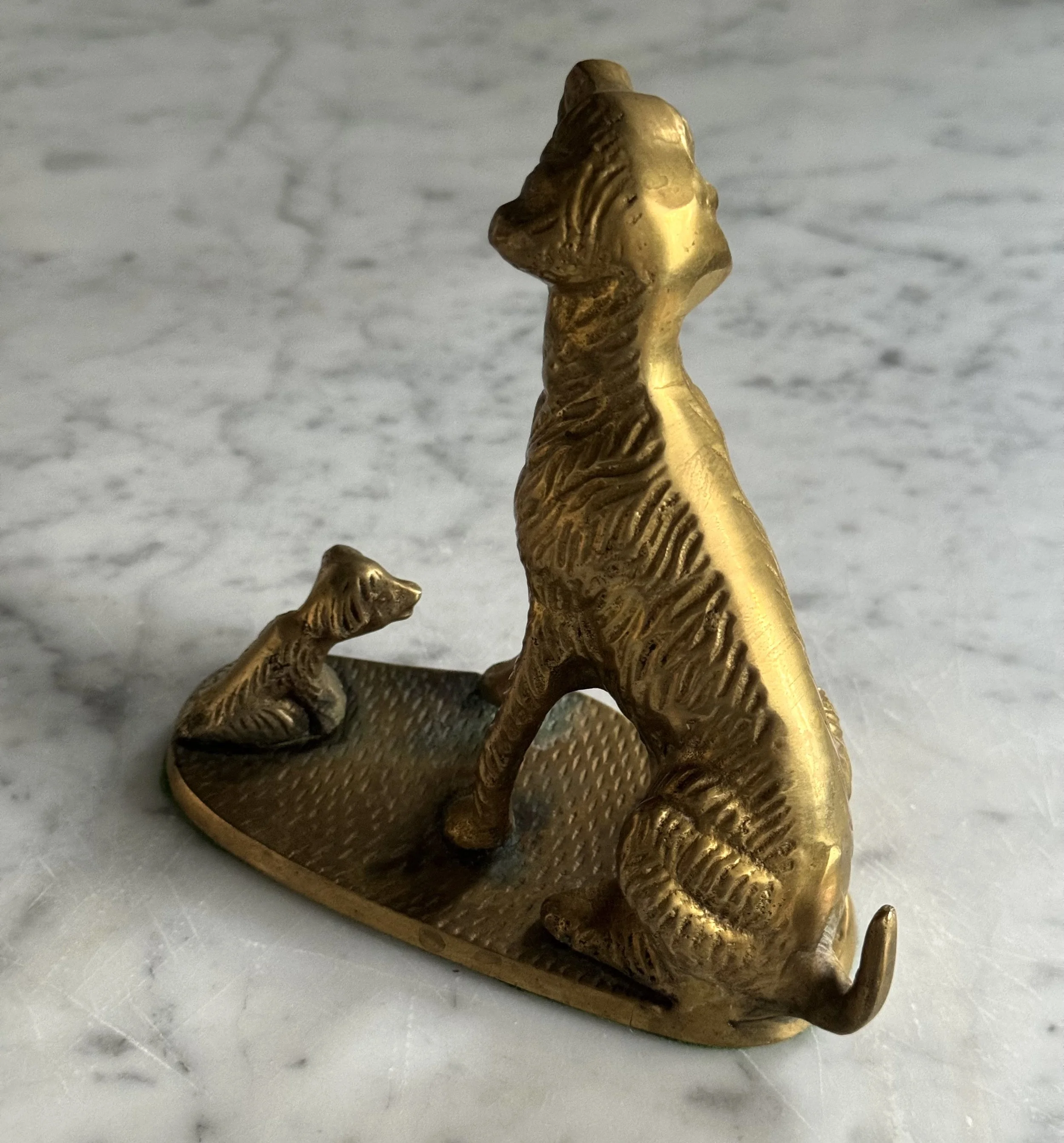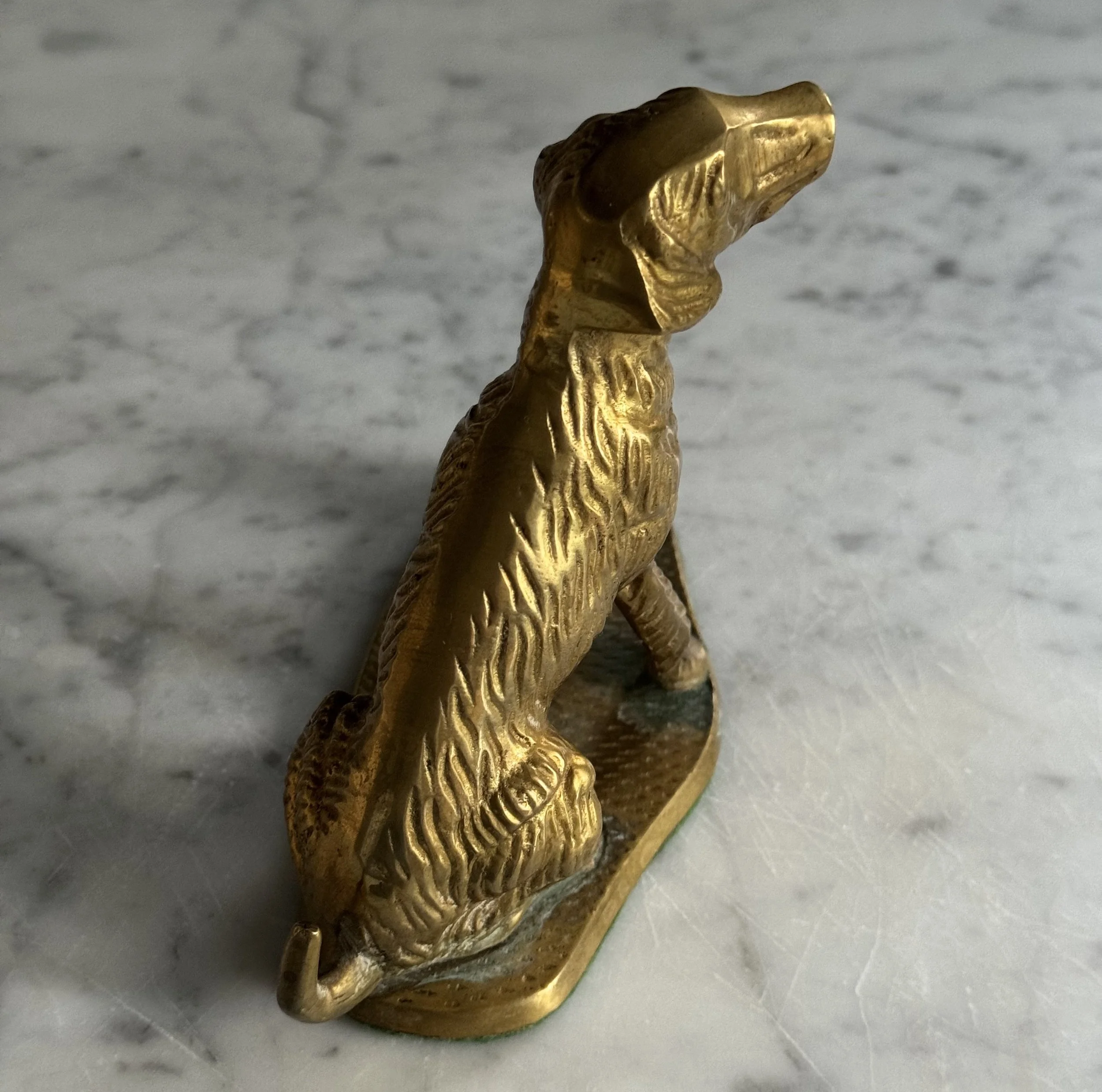ANTIQUE BRASS FIGURAL SEATED BOXER DOG